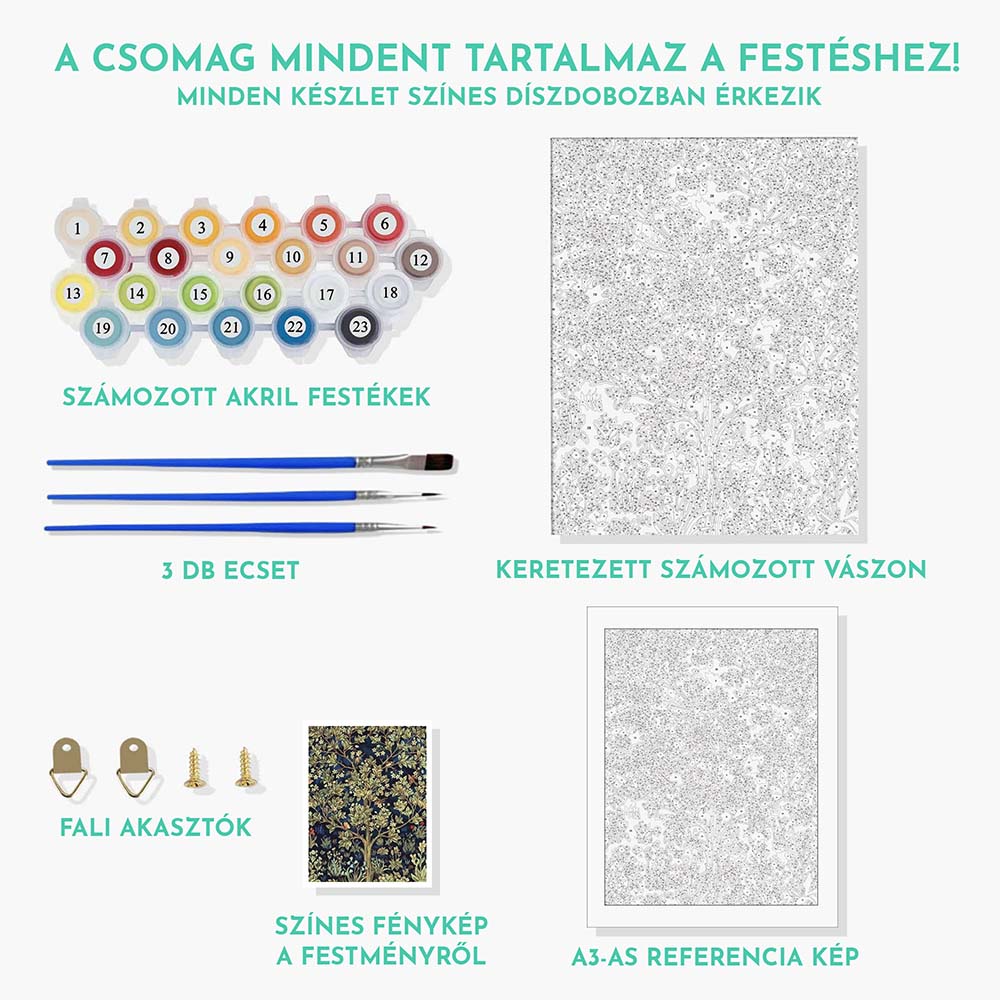 A csomag minden szükséges eszközt tartalmaz ami szükséges a festéshez.