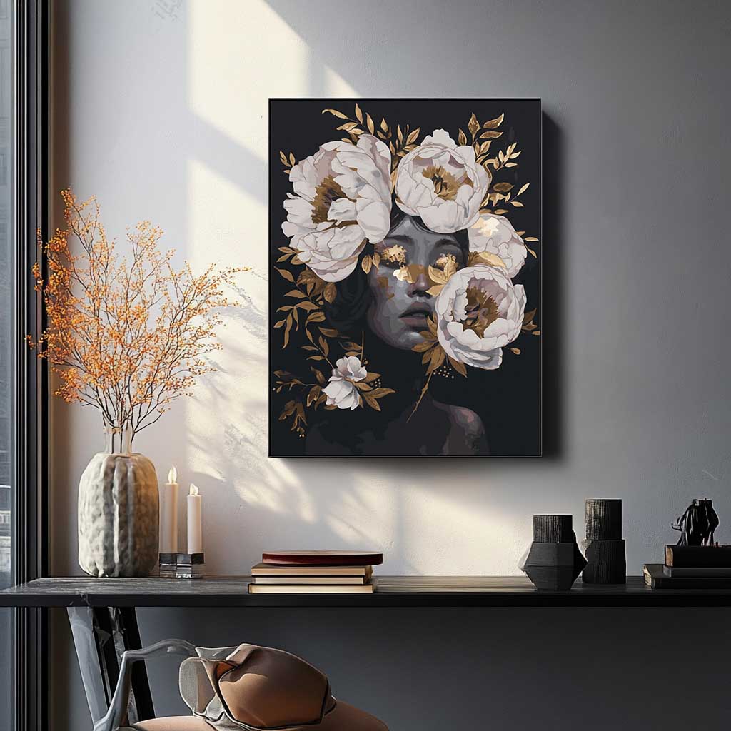 Alkosd meg ezt a különleges hatású virágos női portrét, számfestő készletünk segítségével.
