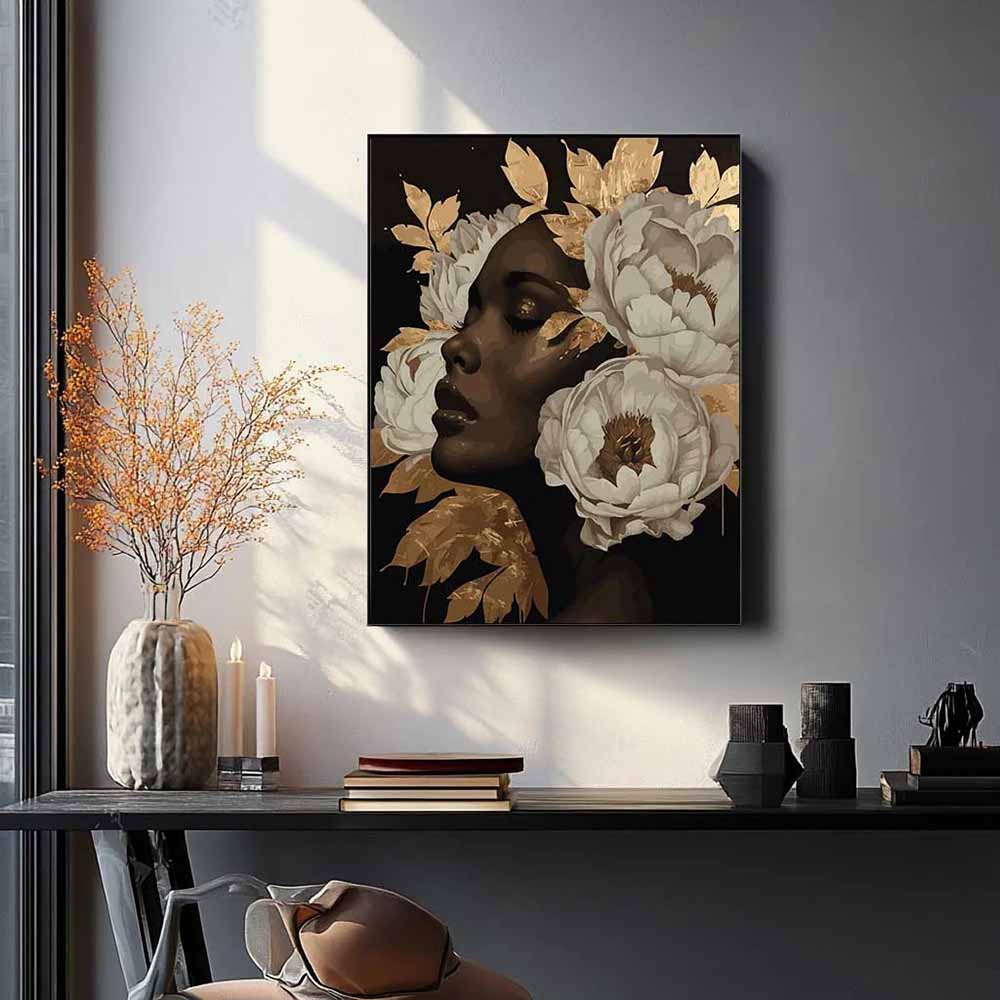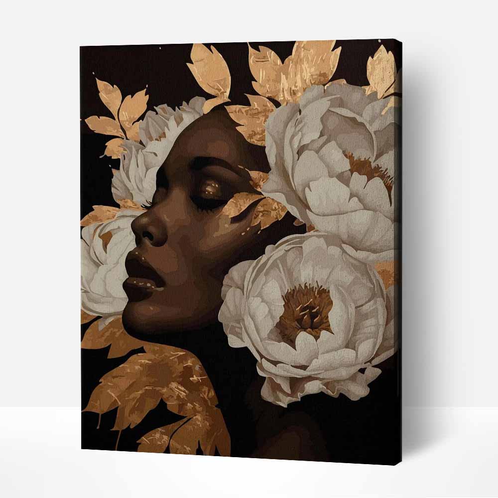Bazsarózsa Női Portré – Számfestő – Arany Festékekkel