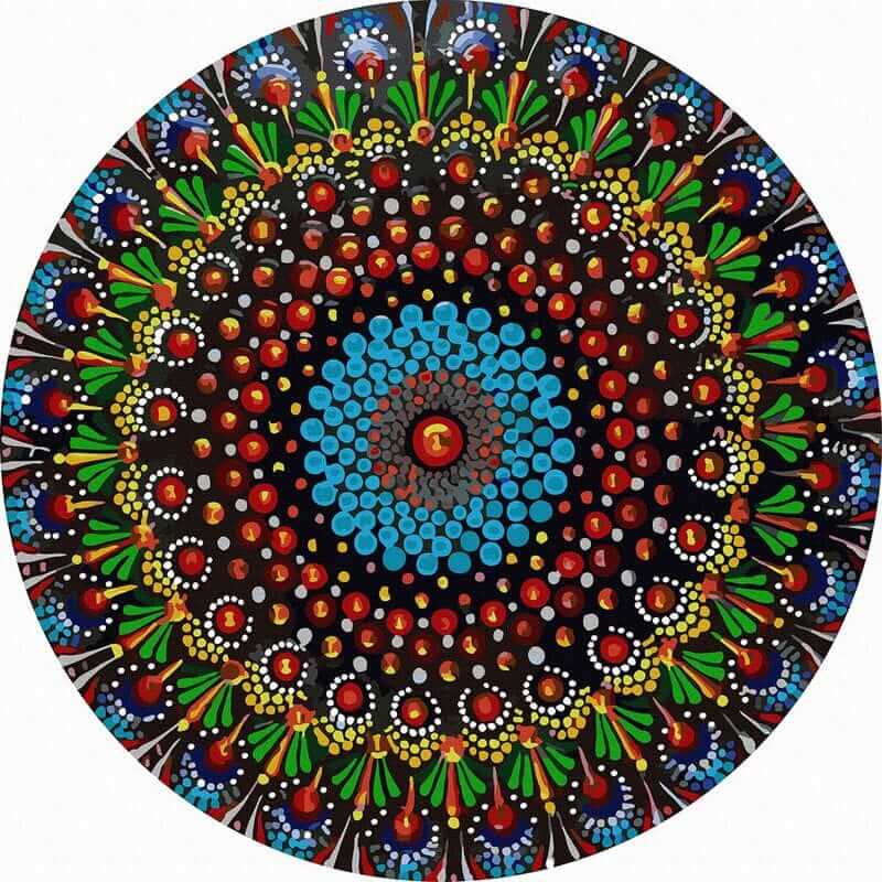Alkosd meg ezt a csodálatos színekben pompázó mandalát, kerek számfestő készletünk segítségével.