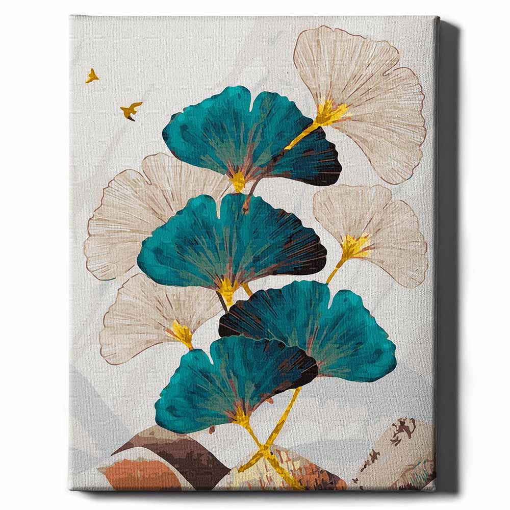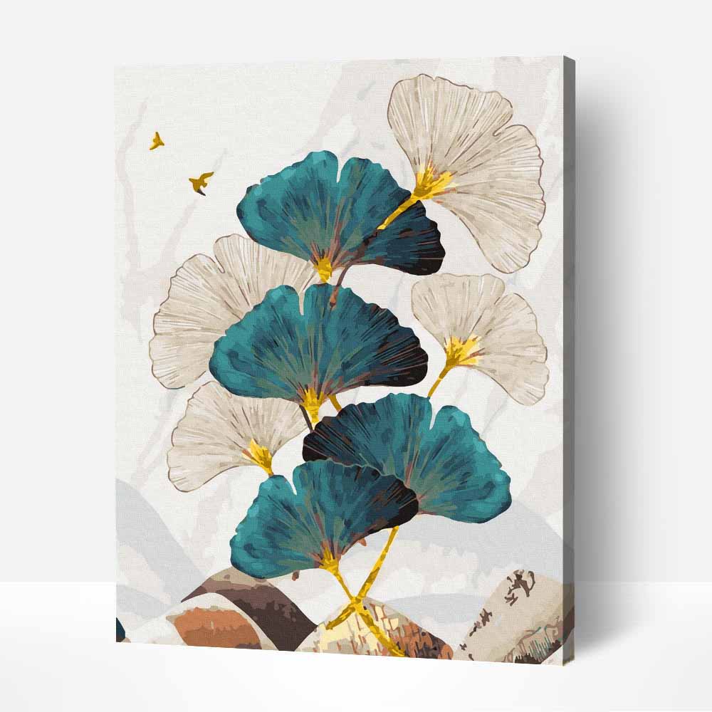 Kék és Fehér Virágok – Számfestő – Arany Festékekkel