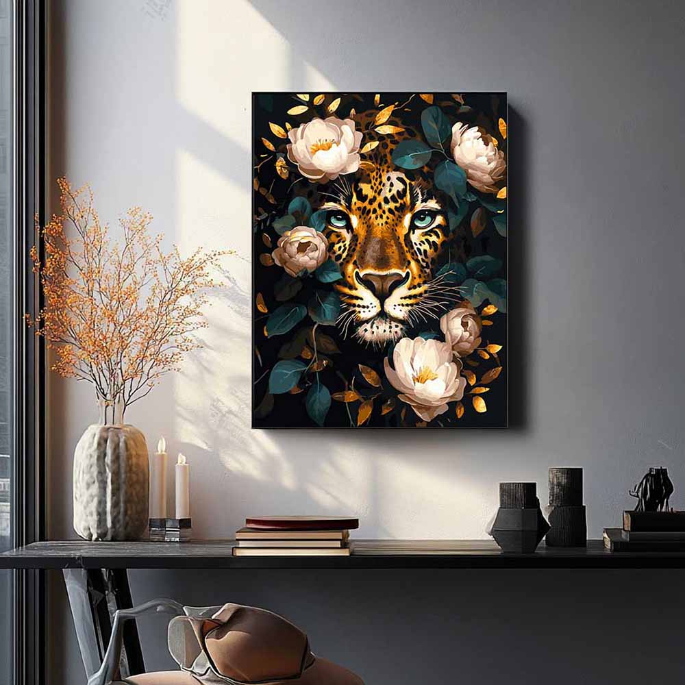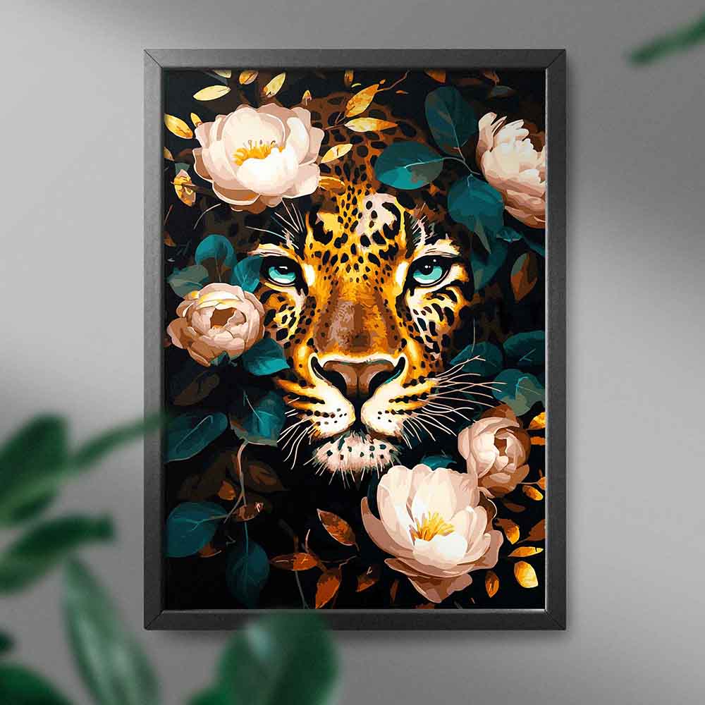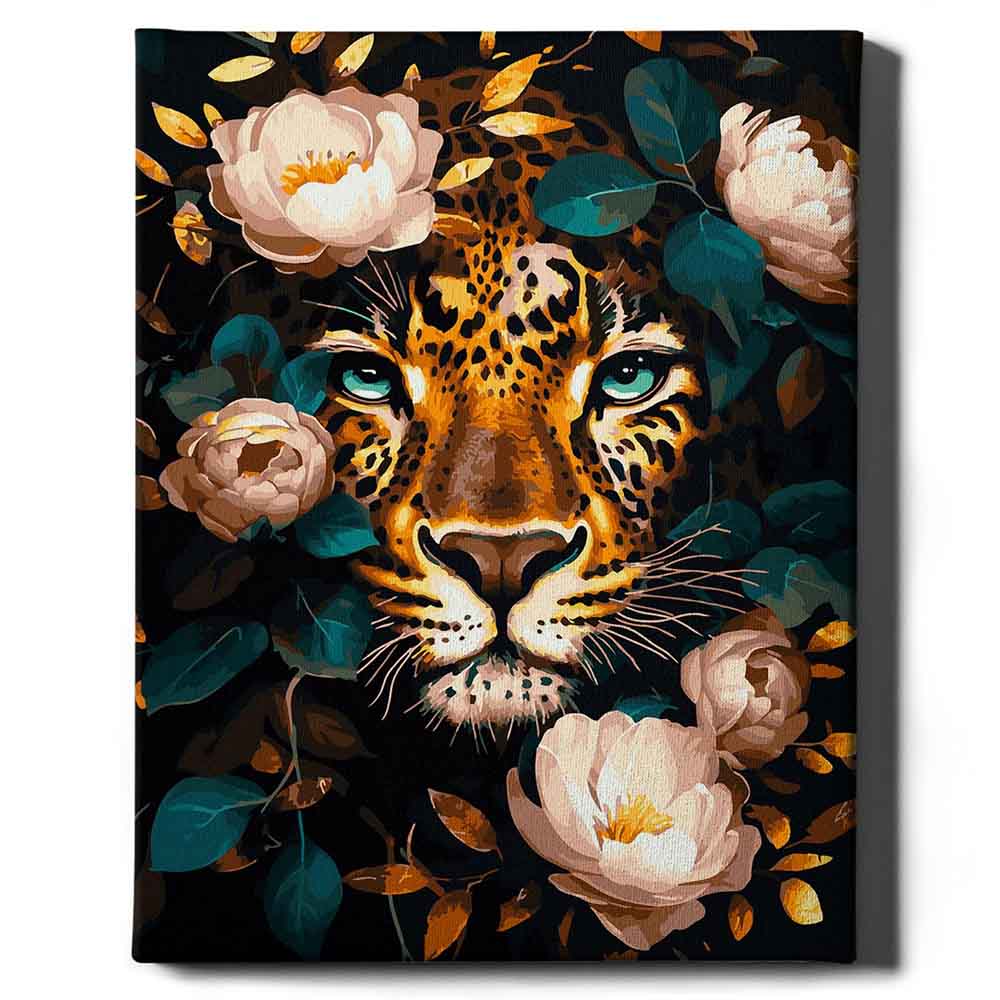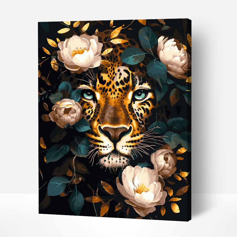 Leopárd Virágokkal – Számfestő – Arany Festékekkel